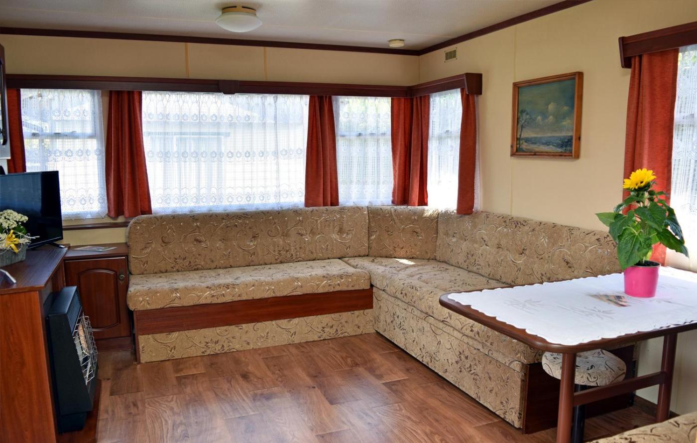 Domek z 2 sypialniami. Featuring a private entrance, this chalet is comprised of 1 living room, 2 separate bedrooms and 1 bathroom with a shower. Guests will find a stovetop, a refrigerator, kitchenware and a microwave in the kitchen. The chalet also has a barbecue. Boasting a terrace with garden views, this chalet also offers a seating area and a flat-screen TV. The unit offers 4 beds. Domek - 6 osobowy. Powierzchnia pokoju ok.: 25 mkw.
