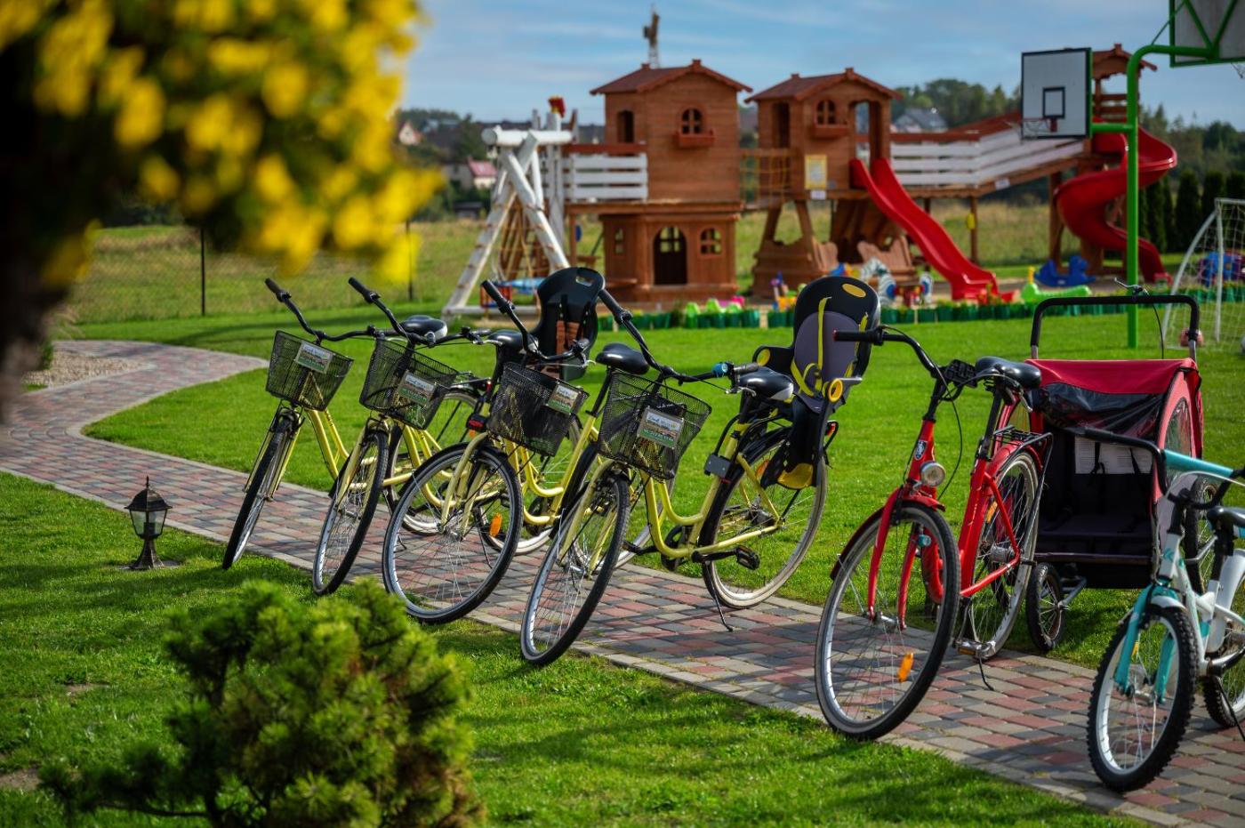 Domek typu Superior. Boasting a private entrance, this chalet includes 1 living room, 2 separate bedrooms and 1 bathroom with a walk-in shower and a hairdryer. Guests will find a stovetop, a refrigerator, kitchenware and a microwave in the well-equipped kitchenette. The chalet also features a barbecue. Featuring a terrace with garden views, this chalet also offers soundproof walls and a flat-screen TV. The unit has 3 beds. Domek - 6 osobowy. Powierzchnia pokoju ok.: 65 mkw.
