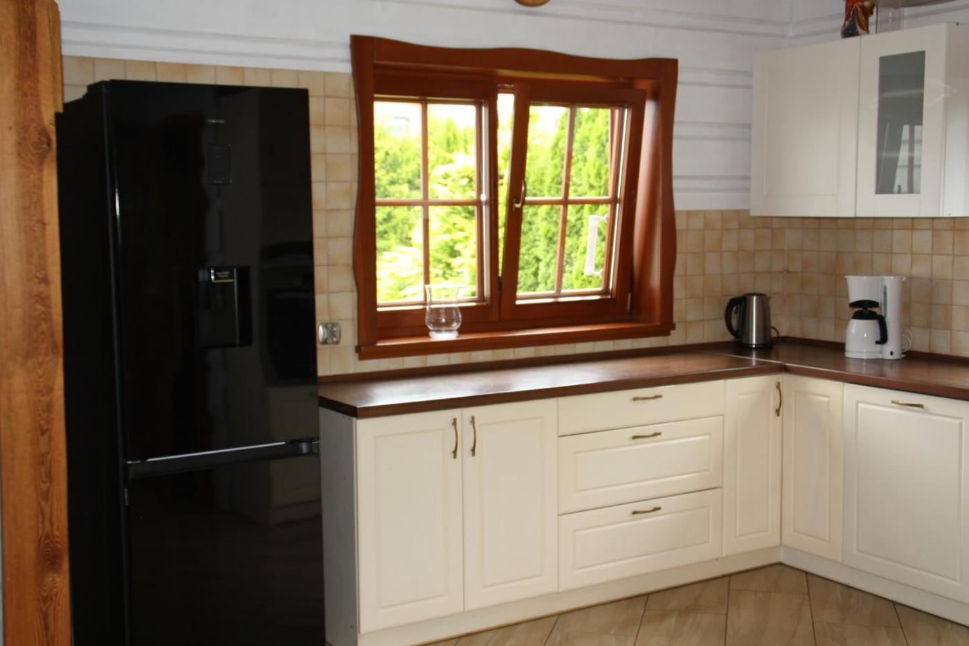 Domek. This chalet features a fireplace. This spacious chalet features 1 living room, 3 separate bedrooms and 2 bathrooms with a walk-in shower and a bath or a shower. Guests will find a stovetop, a refrigerator, a dishwasher and kitchenware in the well-equipped kitchen. The chalet also comes with a barbecue. Boasting a terrace with garden views, this chalet also features a private entrance and a flat-screen TV. The unit has 5 beds. Domek - 8 osobowy. Powierzchnia pokoju ok.: 110 mkw. ;